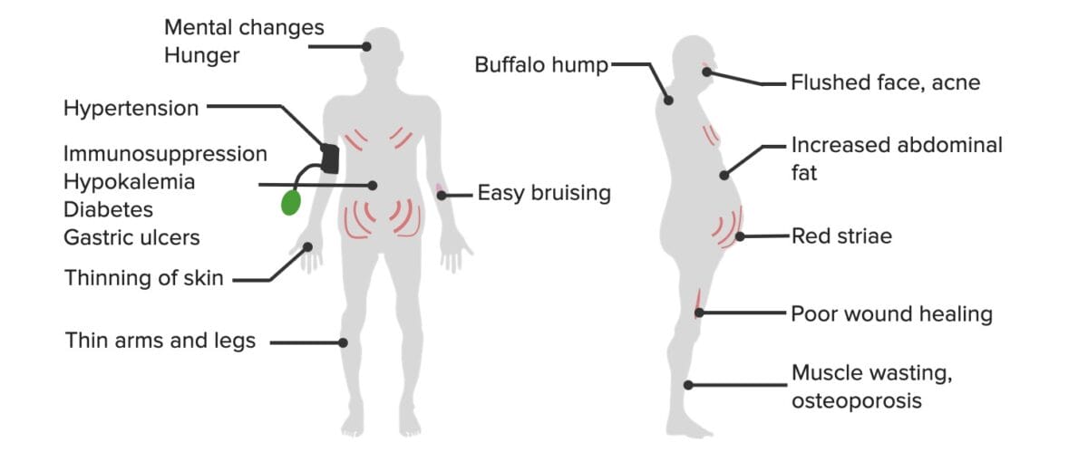 Die häufigsten klinischen Manifestationen von Hypercortisolismus
